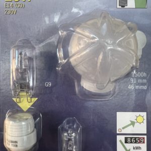 Dabei ist ein Aufschraubglas in Tropfenform D:45mm und 2x G9 25W Halogenleuchtmittel.