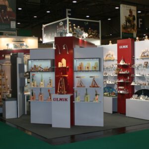 Handwerkskunst der Firma Ulmik aus Seiffen – Weihnachtsmann mit Sack, farbig gebeizt.