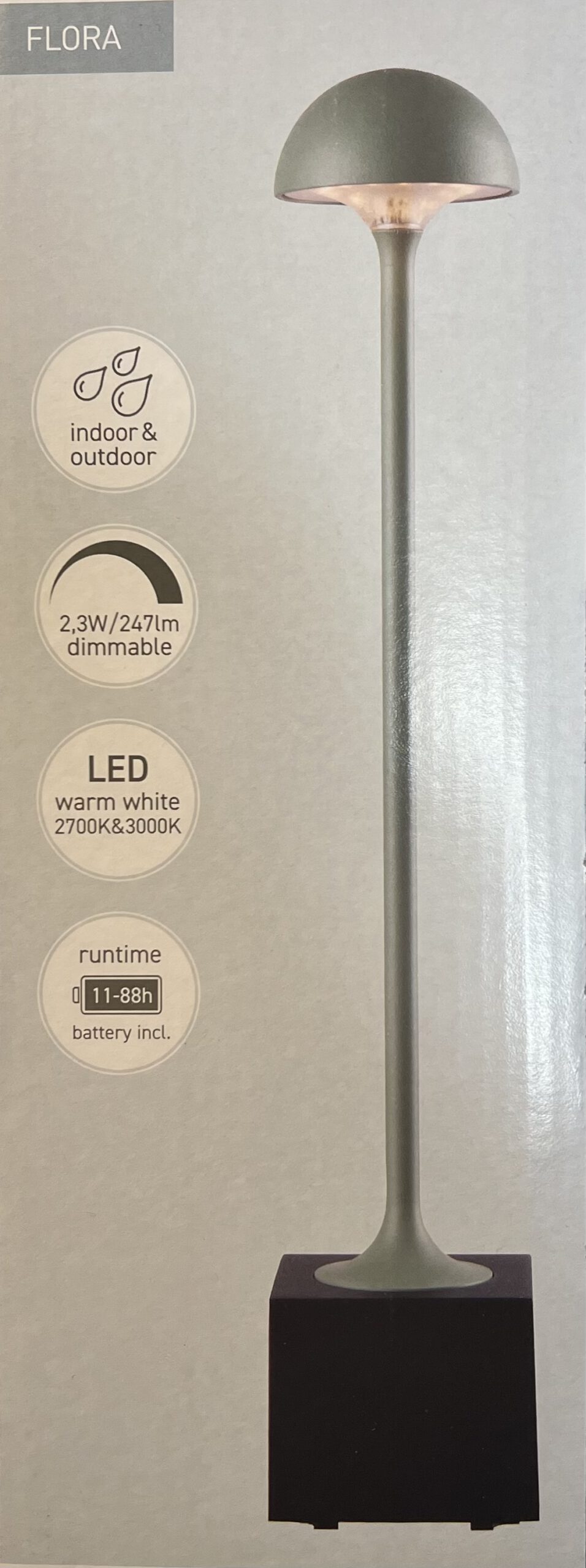 Die Tischleuchte FLORA aus hochwertigen Aluminium und elegantem, klarem Design bietet vielseitige Einsatzmöglichkeiten für den Innen- und Außenbereich. Ob in einem Restaurant oder einem Abendessen auf der Terrasse – die Outdoor Tischleuchte mit Touch-Dimmer sorgt jederzeit für ein perfektes Ambiente bei minimalen Platzbedarf! Mit dem magnetischen Ladekabel lässt sich die FLORA jederzeit ganz bequem aufladen. Der Akku der Leuchte hält bei einer vollen Ladung max. 88 Stunden.