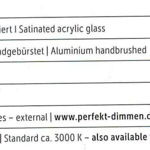 | Farbe: | Alumium gebürstet (Armatur) / Acrylglas satiniert (Diffusor) |