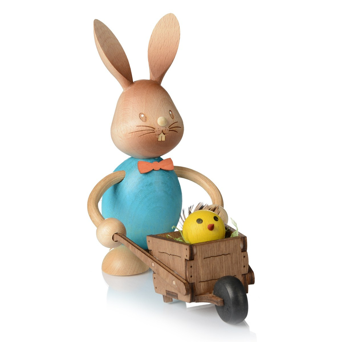 Erzgebirge Osterhase Stupsi „mit Schubkarre“ 13cm, Holz farbig