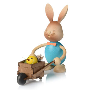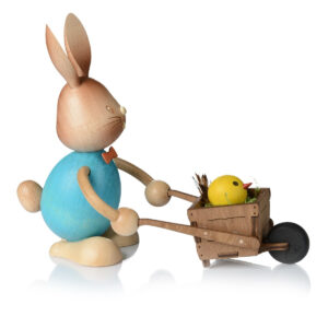 Erzgebirge Osterhase Stupsi „mit Schubkarre“ 13cm, Holz farbig