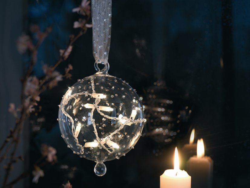 | Material: | Glaskugel klar/silber mit passendem Oranzaband |