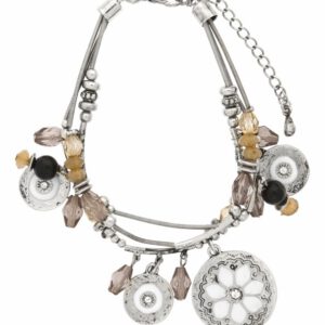 Elegante Armkette Bettelarmband 7H589 verchromt / Halbedelsteine in braun und schwarz / Emaille weiß mit Karabiner-Verschluß